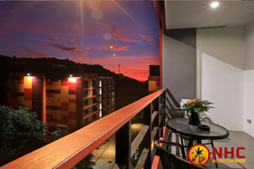 Fully equipped kitchen with all the necessary cooking equipment. Refrigerator, electric stove, microwave, kettle, iron, and ironing table, hairdryer